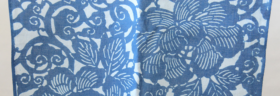 浅い藍色(すくも藍)- 唐草文様