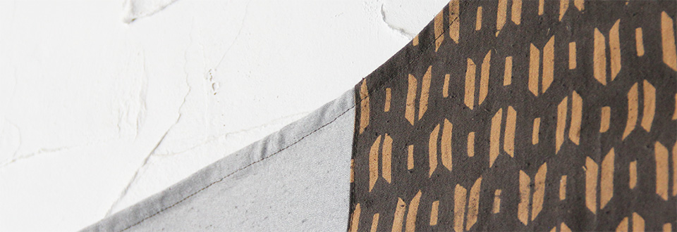 濃い茶色(本山茶)・矢羽根文様・型染め / 銀鼠色・無地